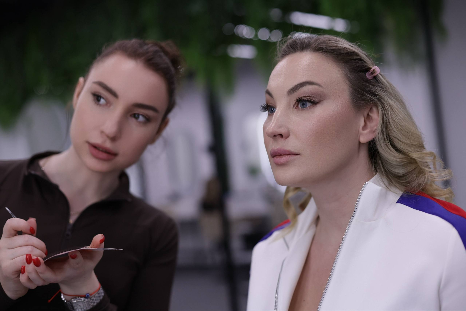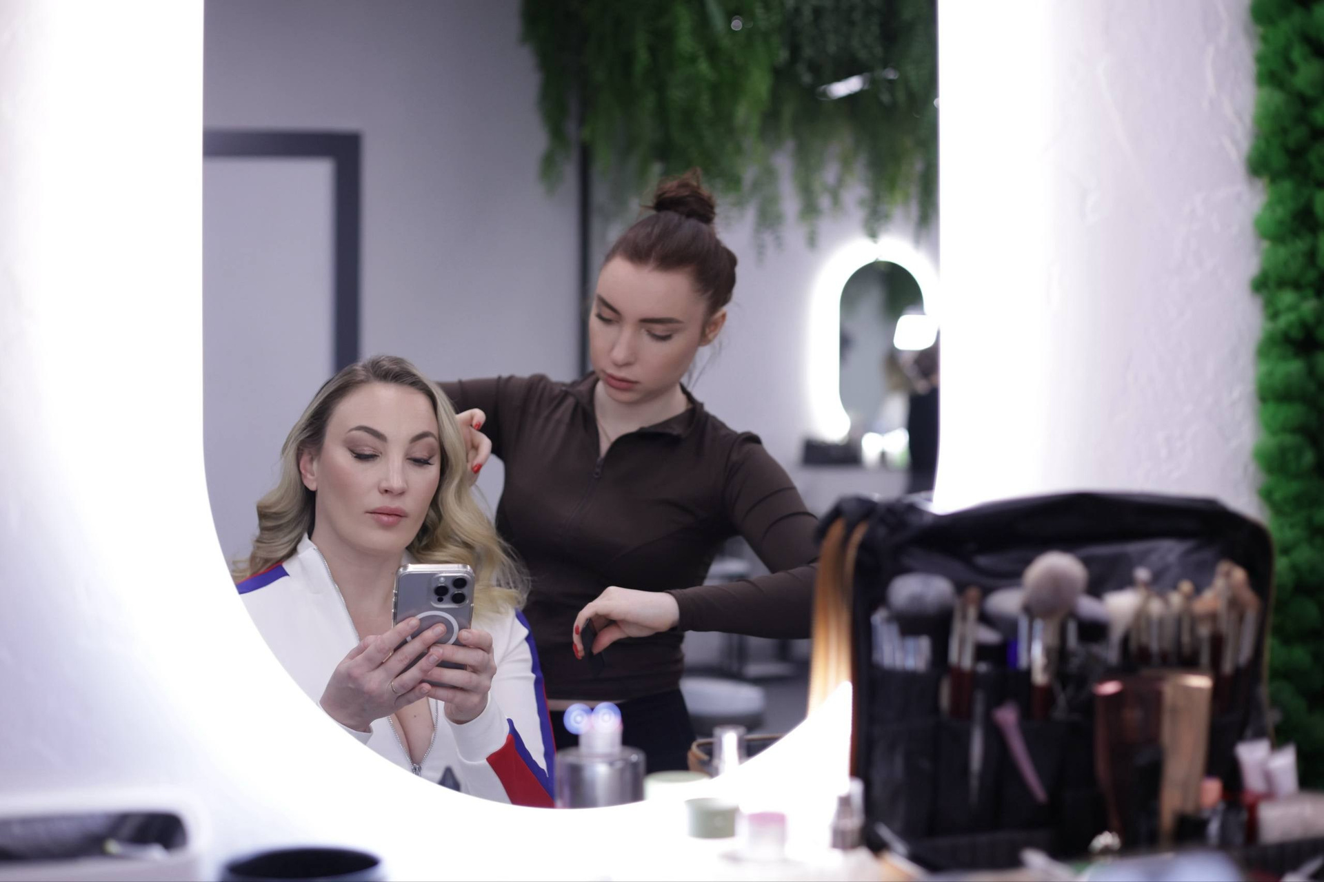 Сборы образа проходят в эстетичных гримерных комнатах на высоте башни Федерация под руководством топ стилиста-визажиста. Вы можете заказать как полный образ (макияж+прическа), или только макияж.